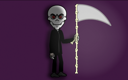 Je parie que vous avez bondi derrière votre chaise quand vous l'avez aperçu, oui messieurs mesdames, c'est bien d'elle qu'il s'agit : La Faucheuse. Elle est la responsables de toutes les grands catastrophes qui sont arrivés sur Terre. C'est la mère de la Mort Junior.
